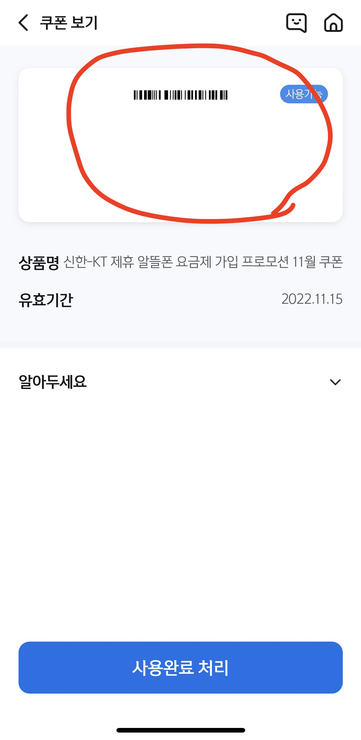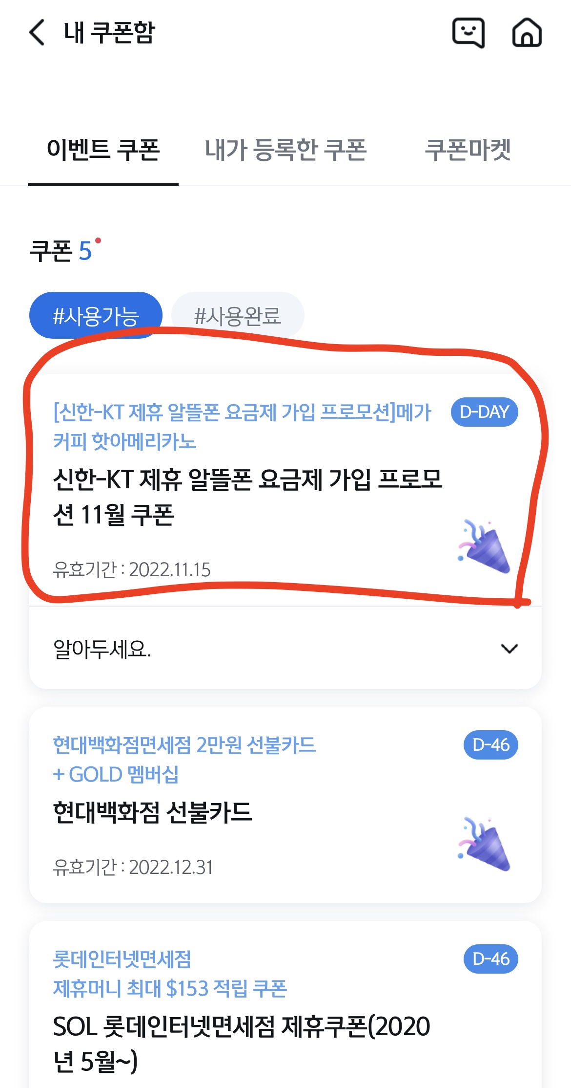 KT M모바일(엠모바일) 신한 SOL(쏠) 요금제 커피쿠폰 사용 방법