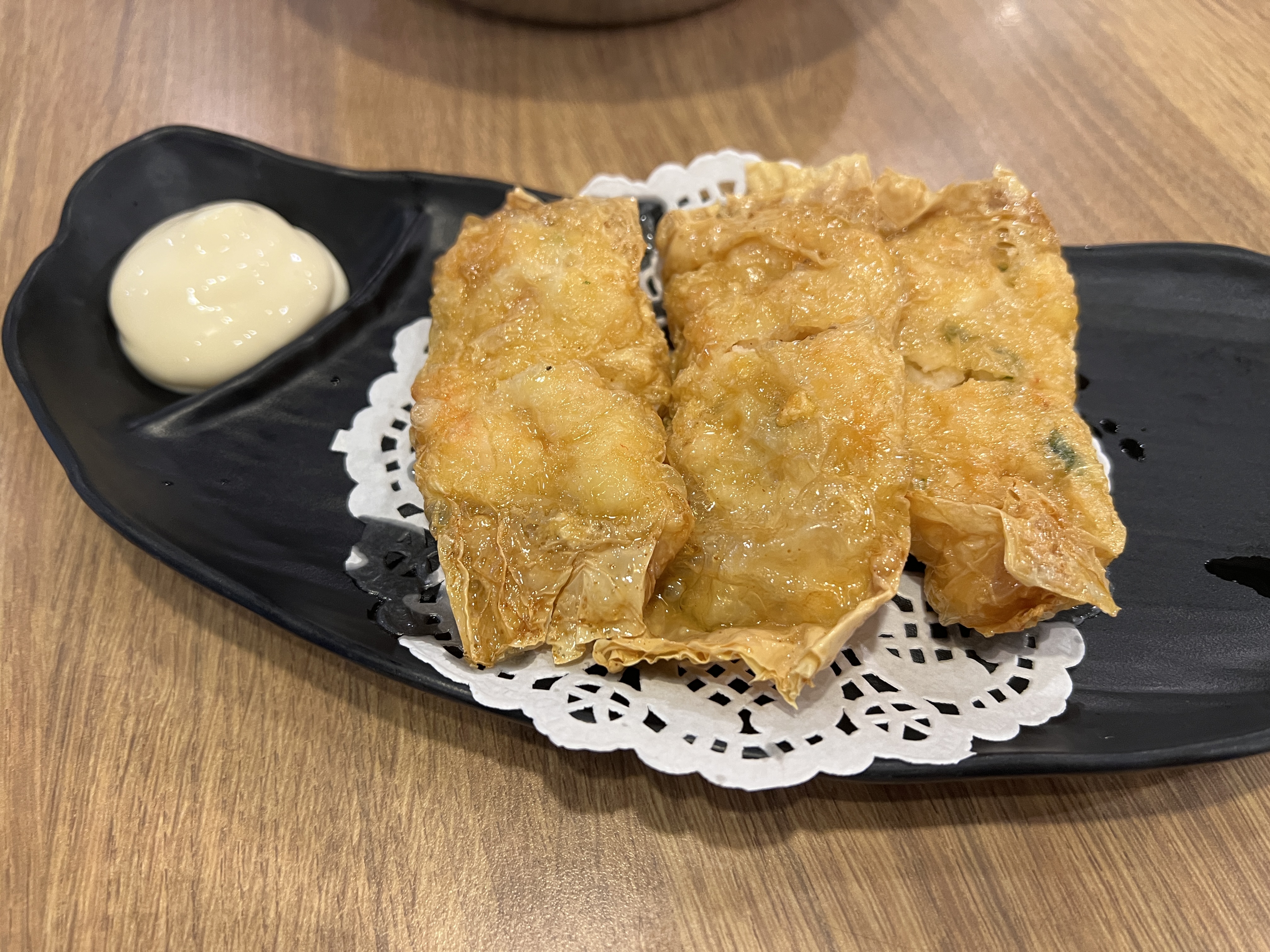 제가 가장 추천하는 메뉴입니다. 우리나라 딤섬집에서 흔히 볼 수 없는 비주얼인데 튀김 속에 새우살이 들어있으니 당연히 엄청나게 맛있습니다. 게다가 마요네즈 같은 소스에 찍어서 먹으면 너무나 맛있습니다. 이 메뉴는 꼭 드셔보시길 추천드립니다.