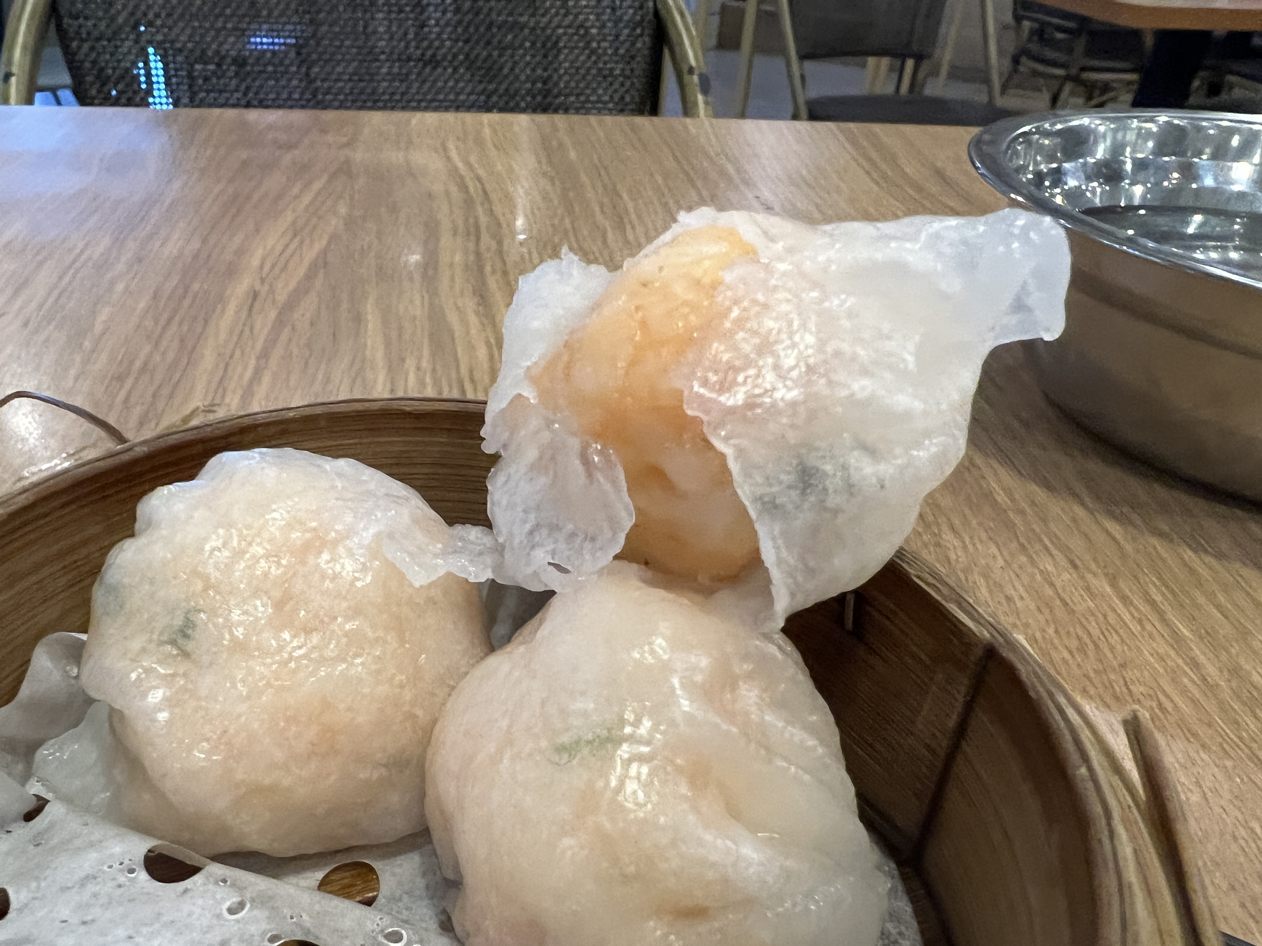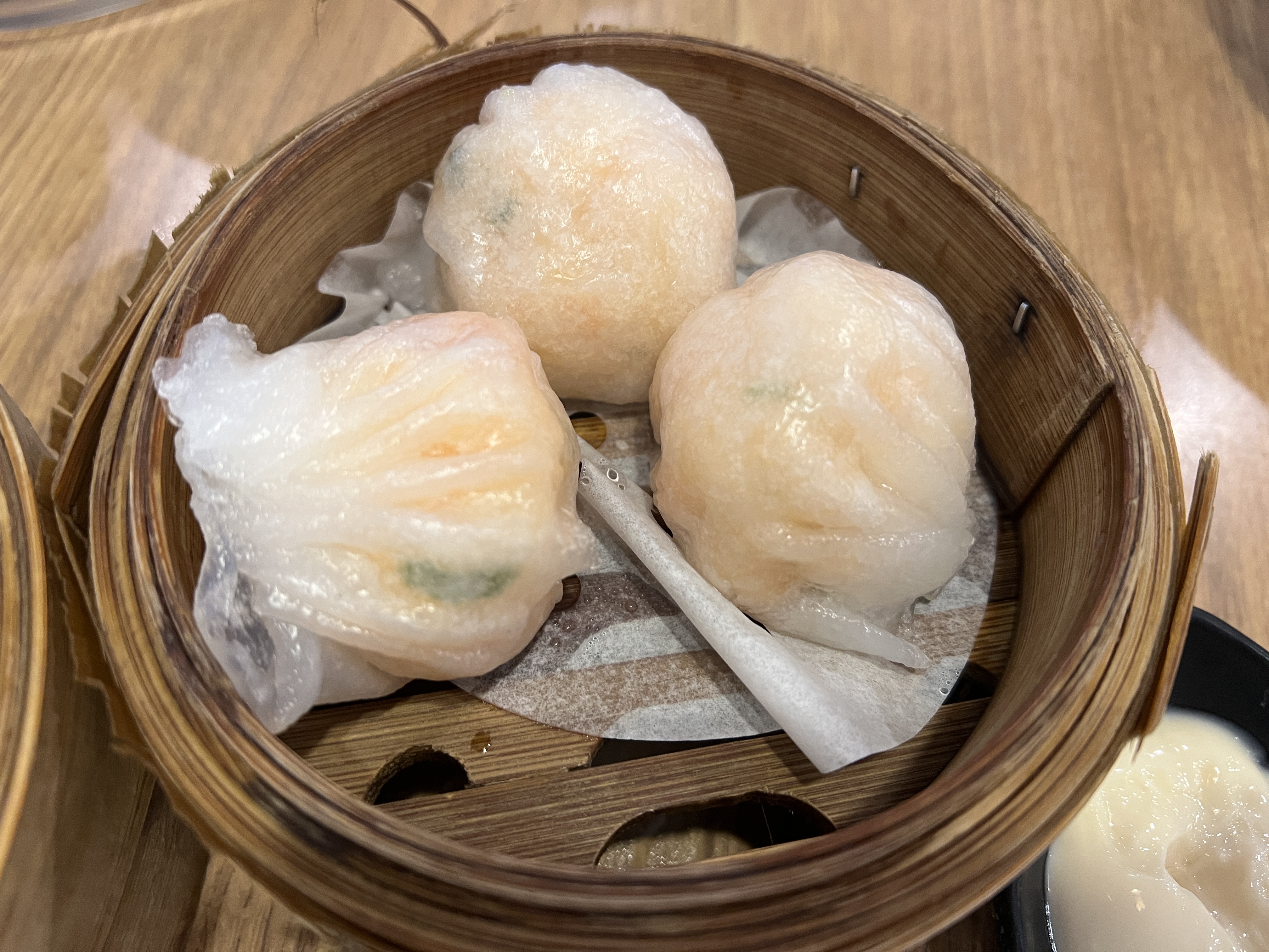 다음은 하가우 입니다. 역시나 이것도 맛이 없을 수가 없죠? 당연히 맛있습니다. 이것도 추천 메뉴입니다. 단 아쉬운 점은 딤섬 속과 겉에 피가 잘 분리되어 조화로운 맛을 느끼기 쉽지 않았다는 것입니다. 하지만 탱탱한 새우살 너무 맛있습니다.
