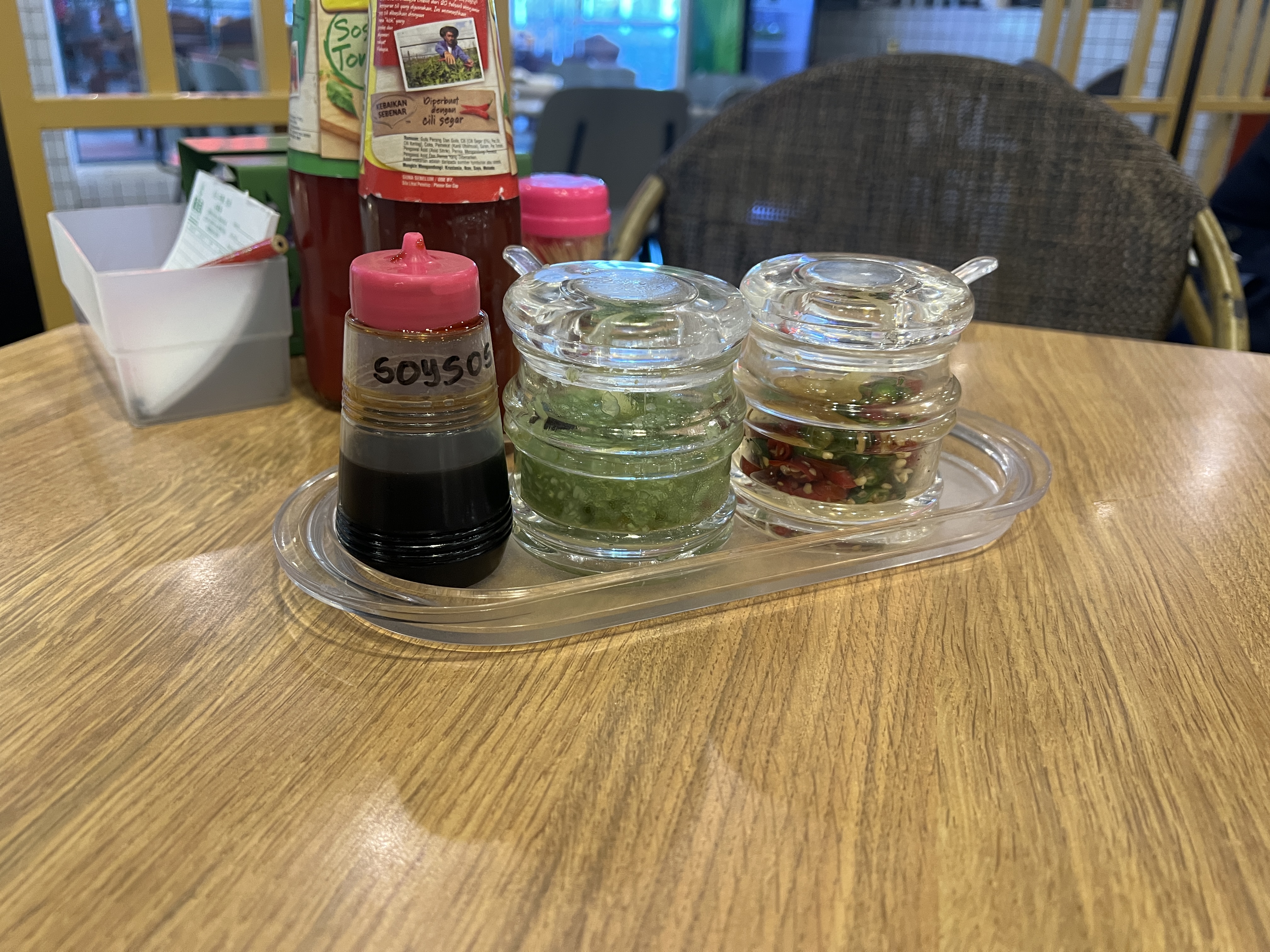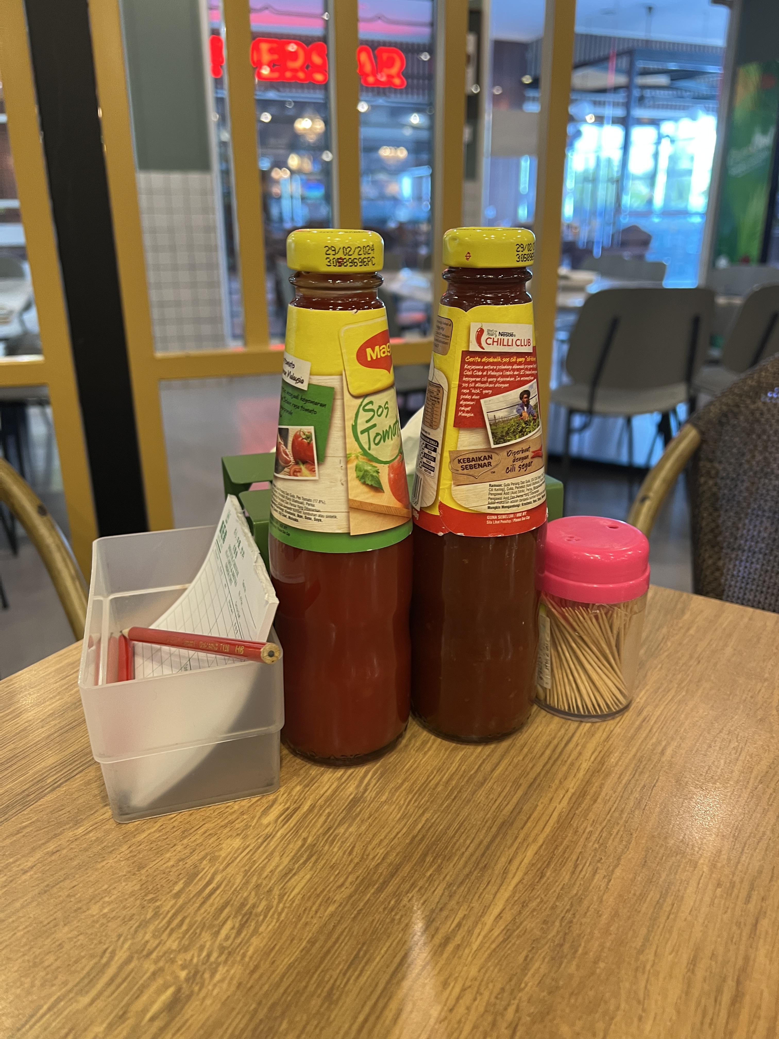 메뉴는 저 소스통 옆 주문용지에 먹고싶은 메뉴와 수량을 작성하여 종업원에게 전달해 주시면 됩니다. 어려울 경우 직원에게 주문해도 되니 편한 방법으로 주문하시면 됩니다. 칠리소스가 있는데 소스통이 유리병이라 덜어 먹기 어려울 수 있습니다. 이때는 젓가락을 찔러 넣고 빼면서 담으면 편하게 소스를 접시에 담을 수 있습니다.