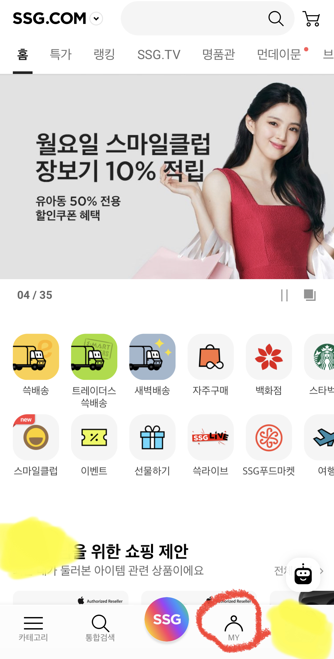 2. SSG 어플에서 하단의 MY를 터치합니다.
