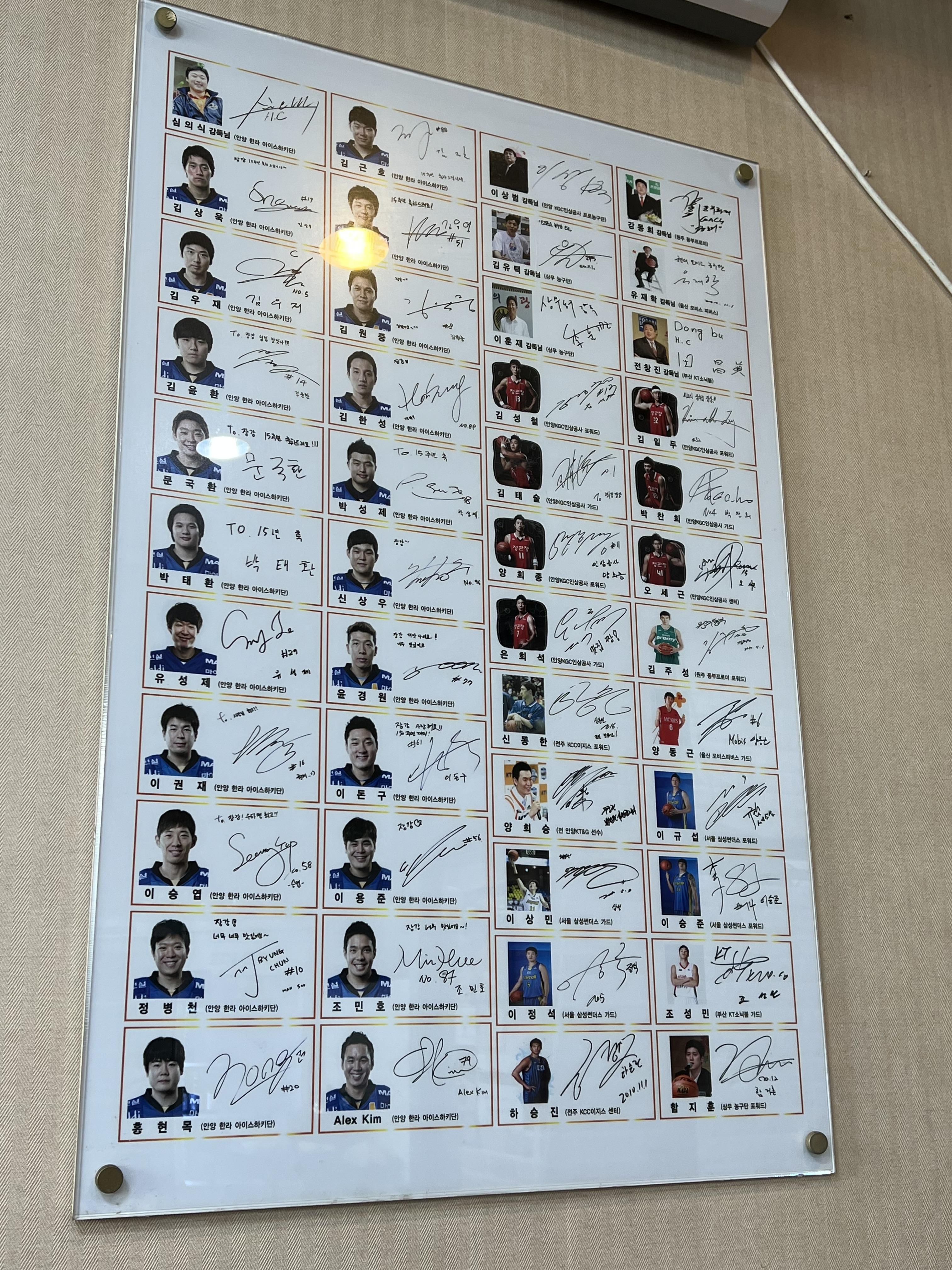 안양 종합운동장 건너편이라 아이스하키 농구 등 선수들의 사진과 싸인이 벽 한편을 채우고 있습니다.