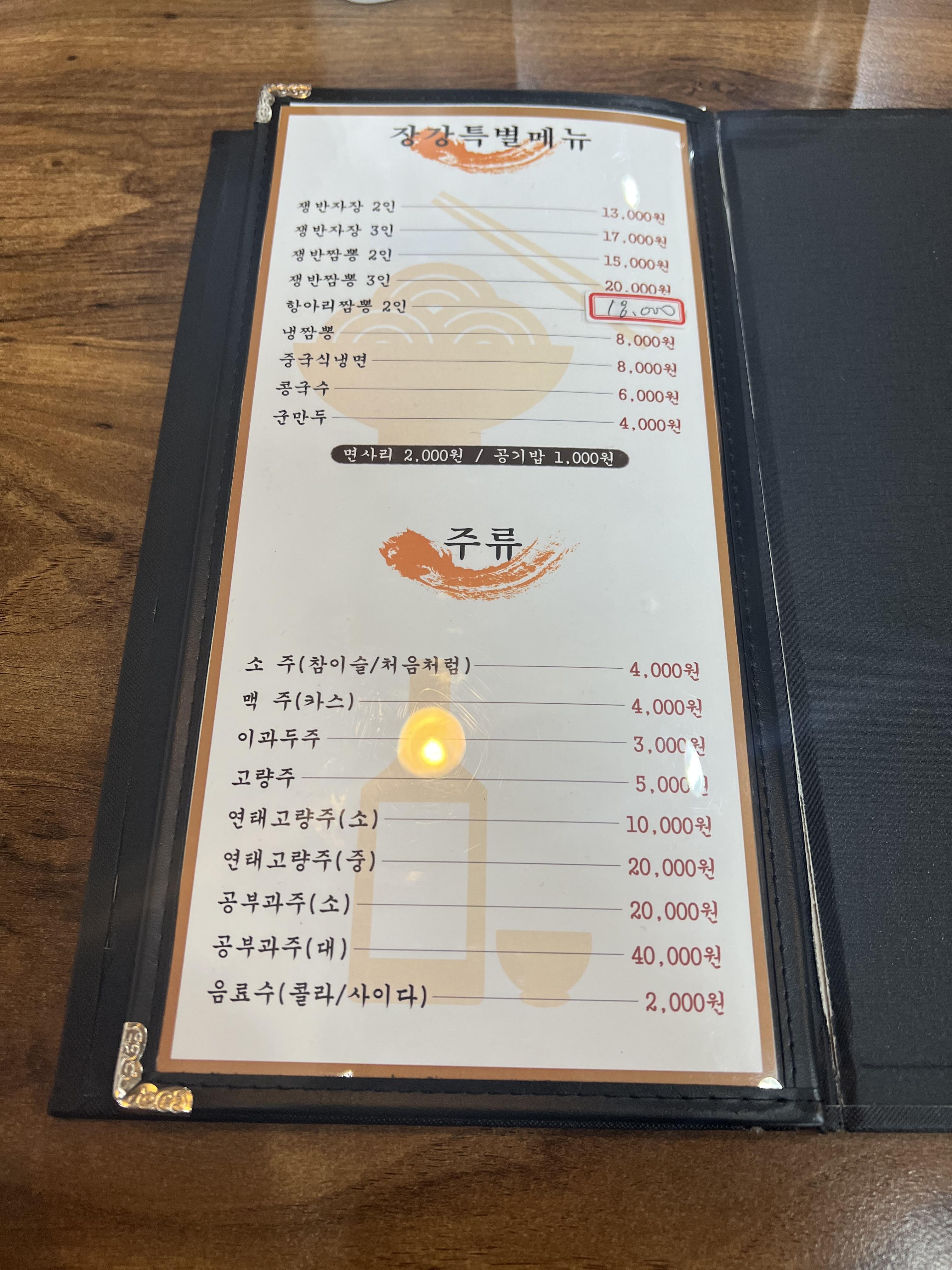 저와 지인은 간짜장 곱배기와 냉짬뽕 곱빼기를 주문하였습니다.